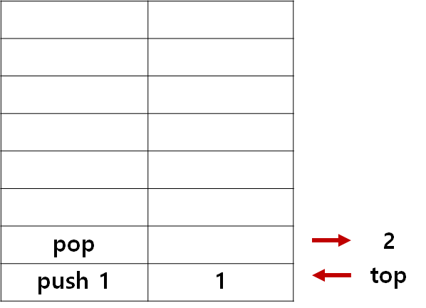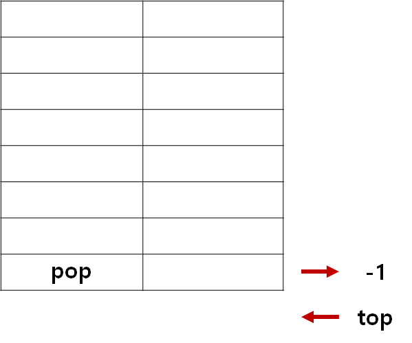 - pop : 스택에서 가장 위에 있는 정수를 빼고, 그 수를 출력한다. 만약 스택에 들어있는 정수가 없는 경우에는 -1을 출력한다.