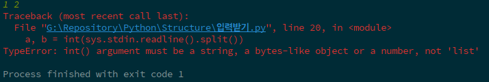 sys.stdin.readline().split()은 리스트로 반환이 되는데, int()함수의 매개변수에는 리스트 타입이 아닌 문자열/객체/숫자 타입이 들어오기 때문입니다.