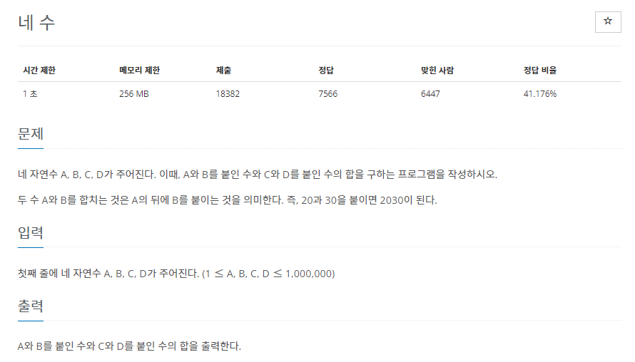 https://www.acmicpc.net/problem/10824