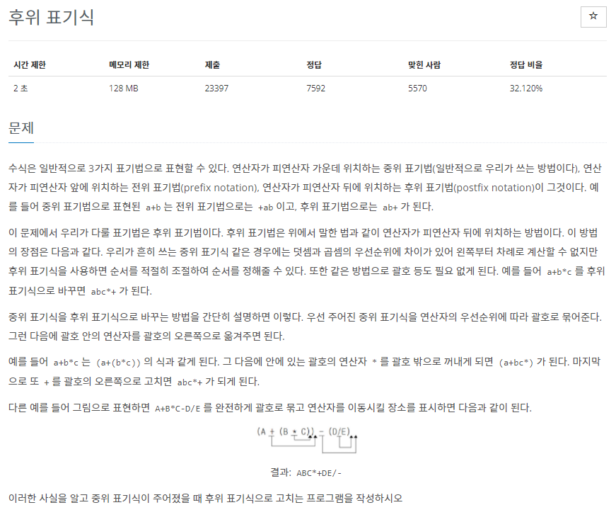 ◾ 중위 표기식을 후위 표기식으로 변환하는 문제