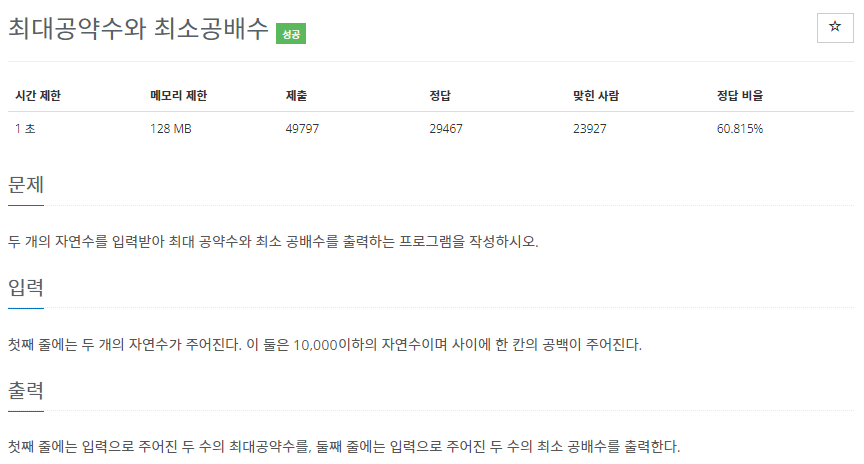 ◾ 두 수의 최대공약수와 최소공배수를 구하는 문제