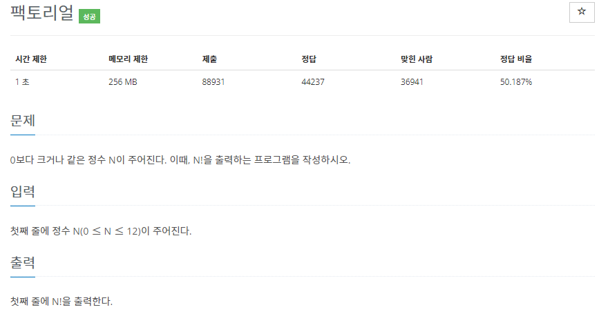 0보다 크거나 같은 정수 N이 주어진다. 이때, N!을 출력하는 프로그램을 작성하시오.