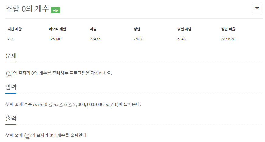 # 코드 플러스 백준 2004 조합 0의 개수 파이썬 python