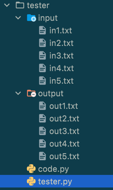 테스터 코드를 돌리기 위하여 필요한 파일 구조는 다음과 같습니다.