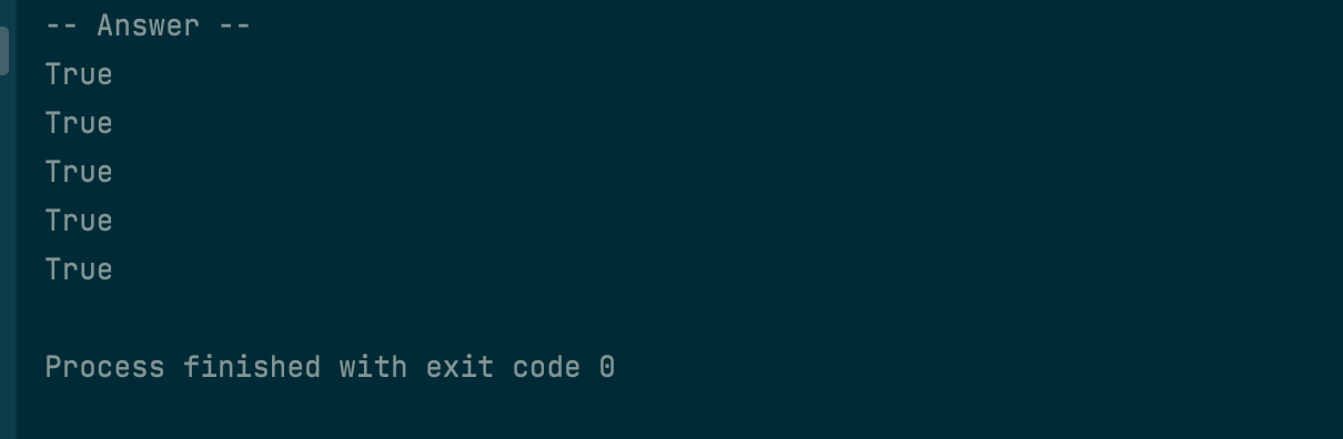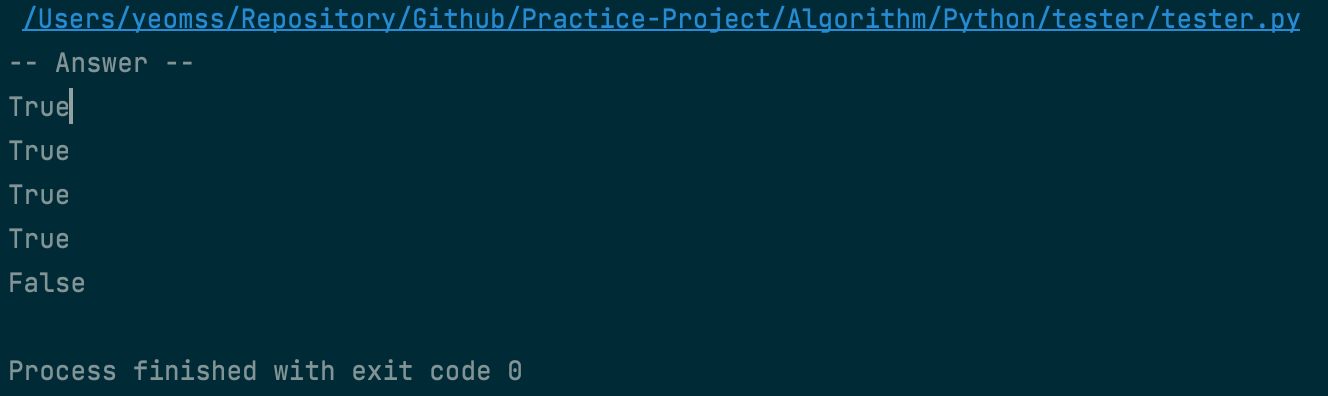 - output 이 일치하면 True를 표시하며, 그렇지 않으면 False를 표시합니다.