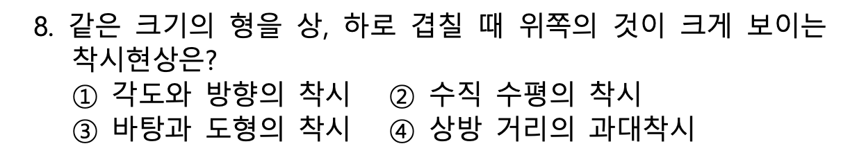 - 같은 크기의 형을 상, 하로 겹칠 때 위쪽의 것이 크게 보이는 착시현상
