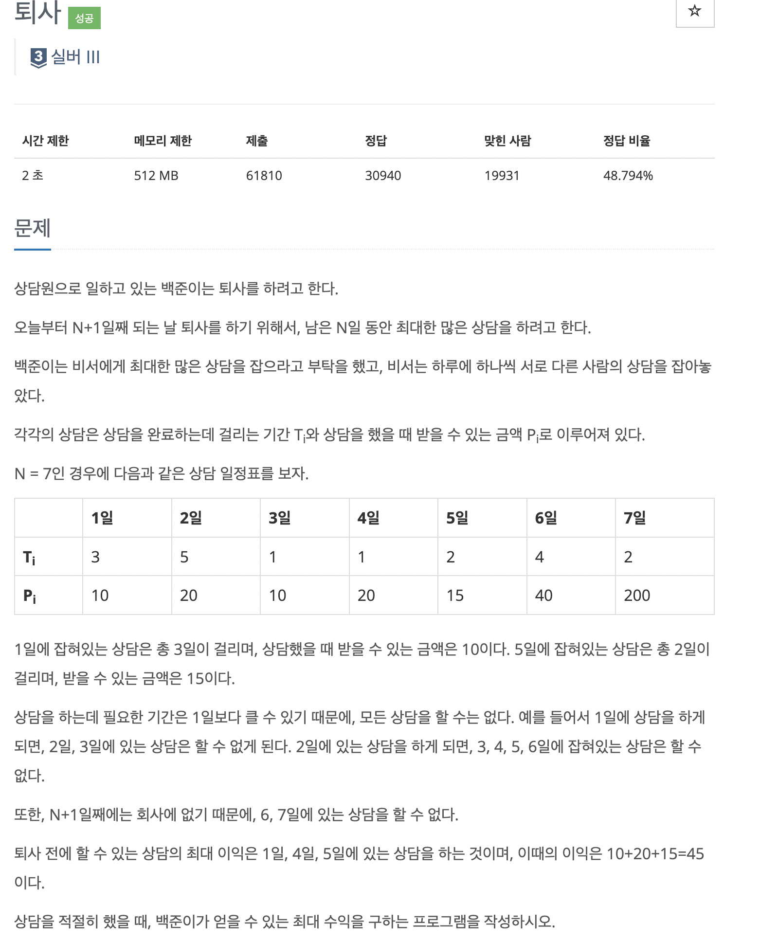https://www.acmicpc.net/problem/14501