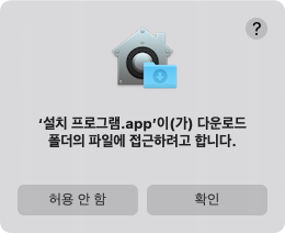 설치시에 다운로드 파일에 접근하려고 하는데 이도 확인을 체크합니다.