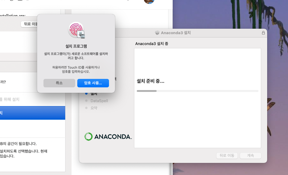 그리고 설치하기전에 맥 사용 pin이나 touch id 묻는데 비번 푸시면 됩니다.