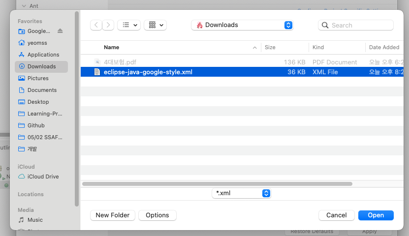 예를 들어 위와 같은 GoogleStyle 파일을 가져와서 적용시킨다고 하면 [Import] 를 누르고 해당 파일을 선택해주면 됩니다.