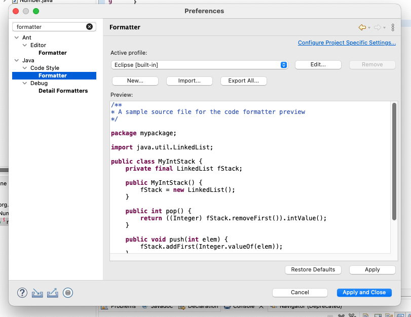 여기서 [Import] 를 누르면 다른 formatter 파일을 불러와서 사용할 수 있어요.