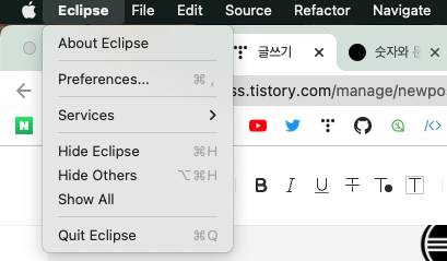 | Java 이클립스(Eclipse) 설치 with MAC (1) | 2022.07.04 |