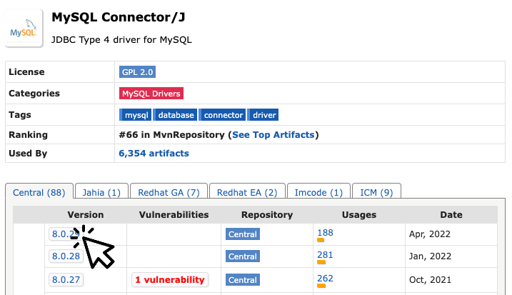 우선 예시로 MySQL jar 파일을 다운 받도록 하겠습니다.