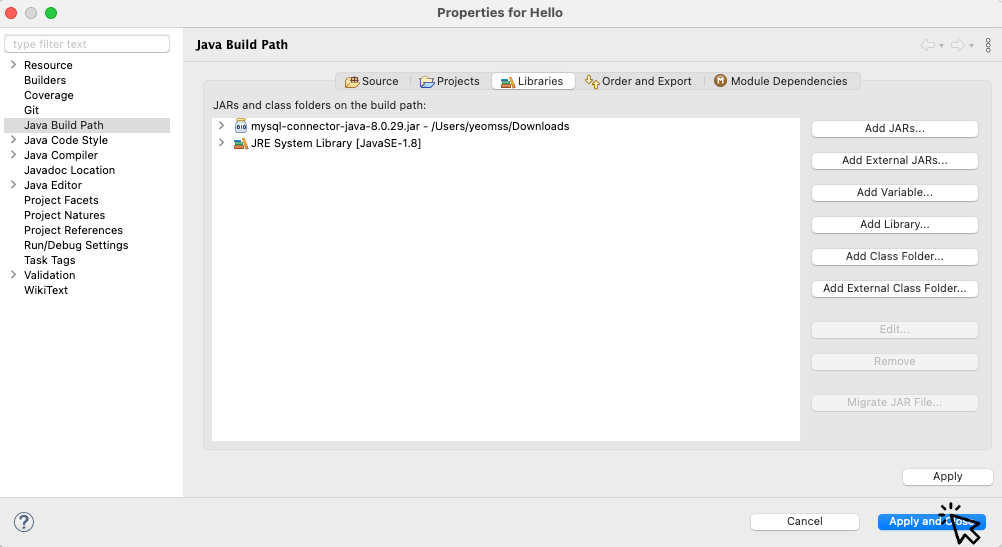 아까 다운 받았던 jar 파일을 클릭해서 추가해주세요.