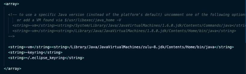<string>-vm</string><string>/Library/Java/JavaVirtualMachines/zulu-8.jdk/Contents/Home/bin/java</string>