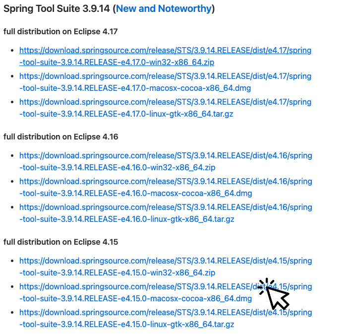 해당 버전에서 설치된 Eclipse 버전과 맞춰주기 위해서 4.15 버전을 설치해줍니다.