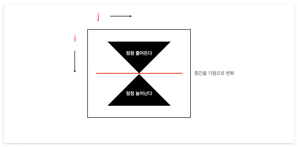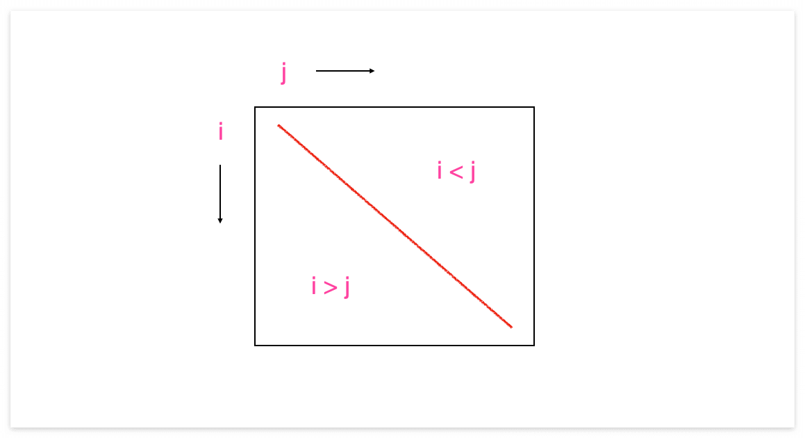 대각선을 기준으로 오른쪽 위는 i < j 인 경우이고, 아래는 i > j 입니다.