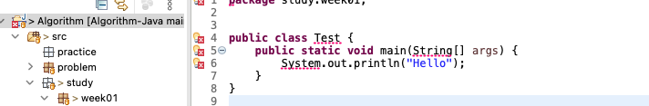 왼쪽 프로젝트 란에 빨간 느낌표가 뜨면서 저렇게 System 이나 클래스 이름에 빨간색깔 오류가 나온다.