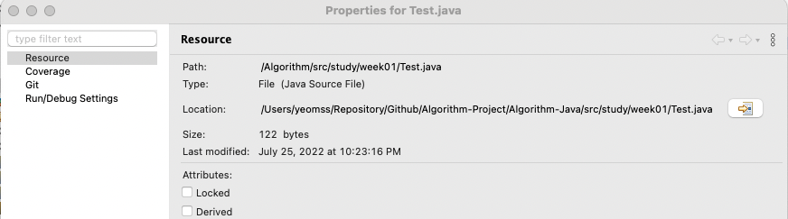 파일에 오른쪽 마우스를 눌러 Properies 에 들어갑니다. 그러면 Location 부분에 저렇게 파일 경로가 나옵니다.