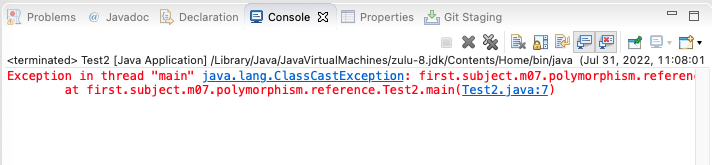 이때는 instanceof 연산자를 사용해서 실제 메모리에 있는 개체가 해당 클래스 타입인지 확인을 해야합니다.