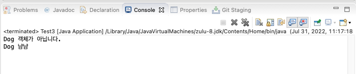 System.out.println("Dog 객체가 아닙니다.");
