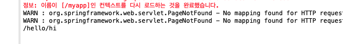 이도 마찬가지로 /hello/hi 에 들어가야만 오류가 나지 않습니다.