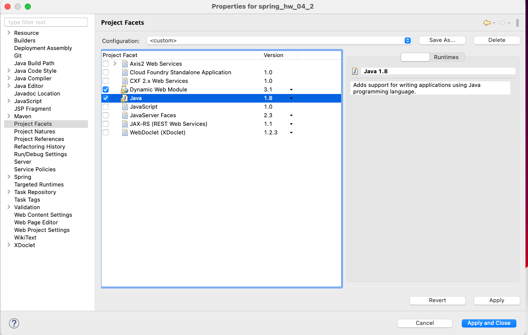 프로젝트의 Properties 에 들어가서 Project Facets 에 버전 또한 수정해줍니다.
