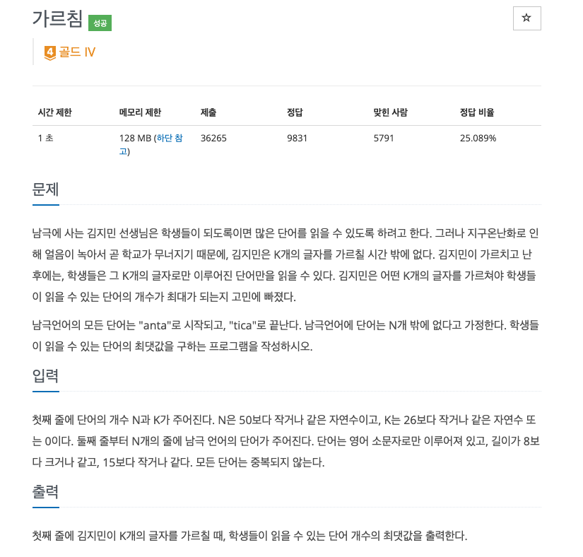 https://www.acmicpc.net/problem/1062